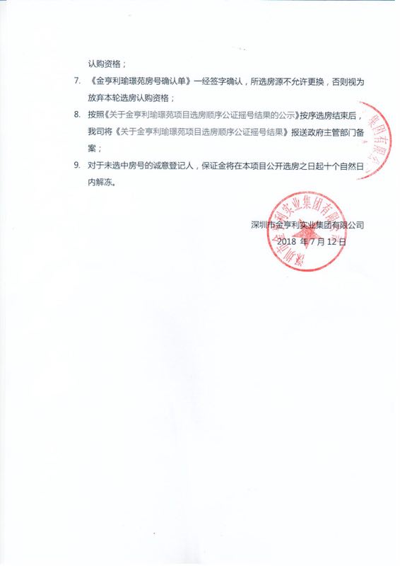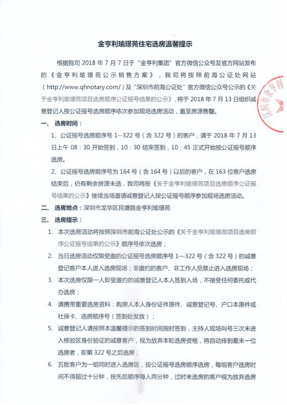 金亨利瑜璟苑住宅選房溫馨提示